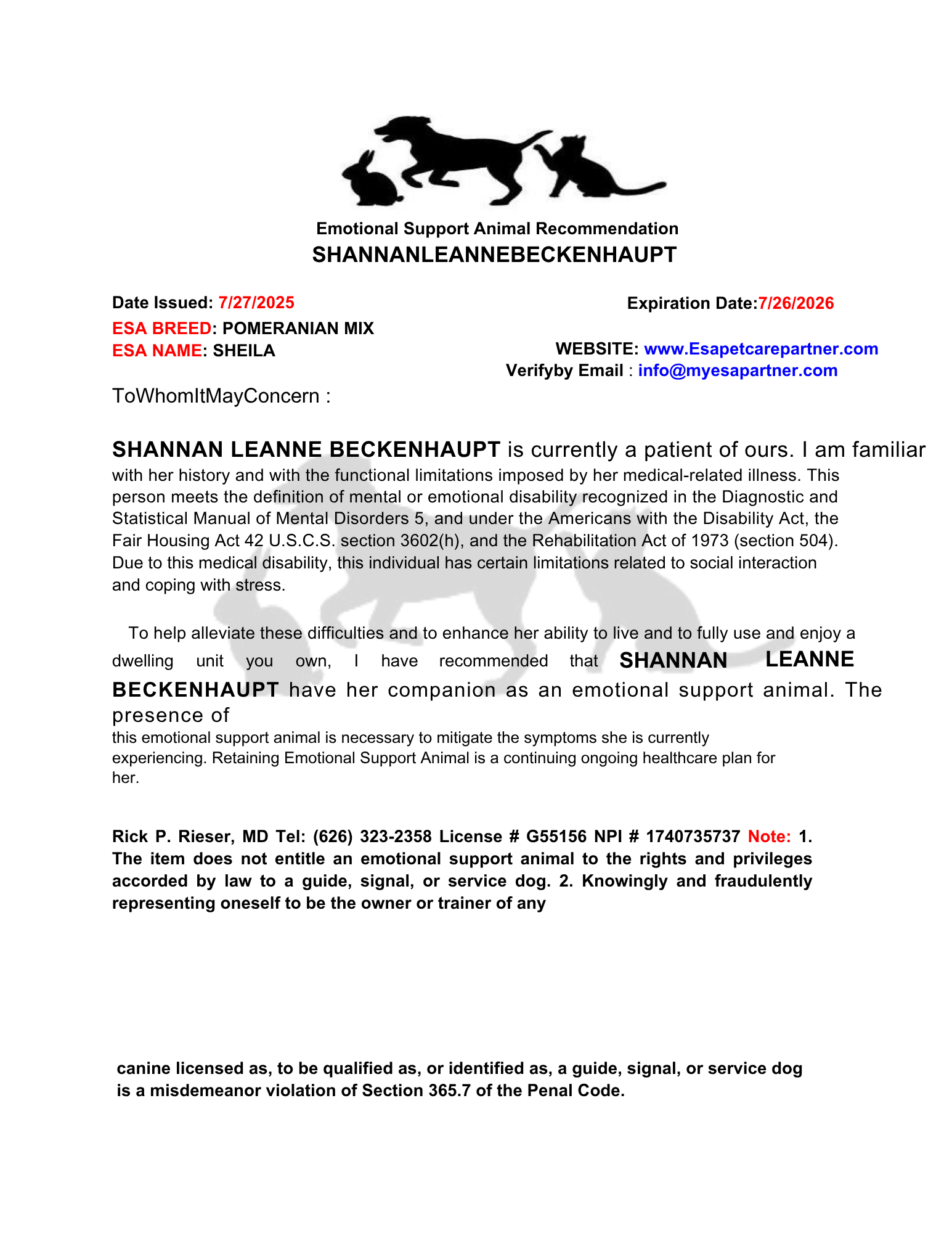 Complete ESA Package: ESA Letter For Housing + ESA Vest + ESA Leash